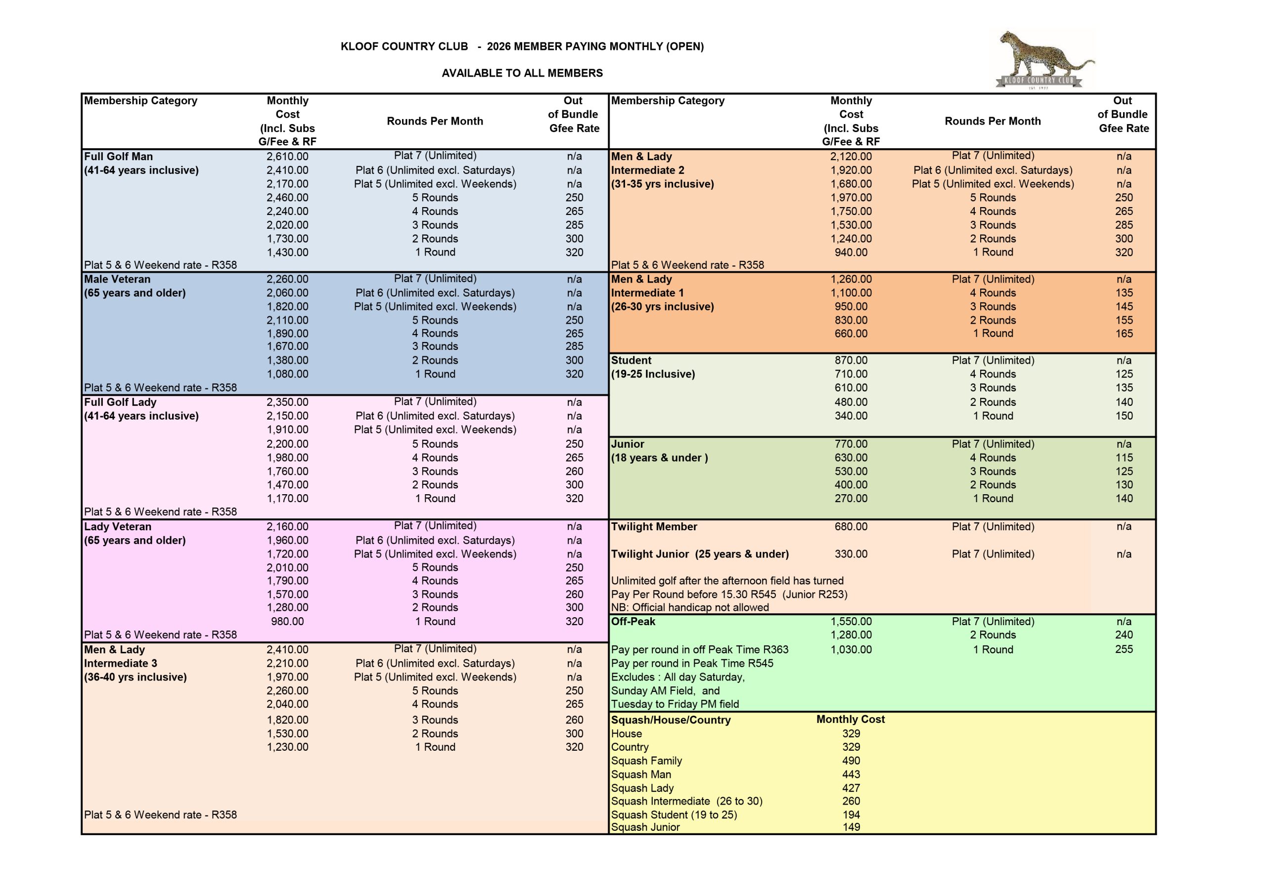 • Golf Annual Subs